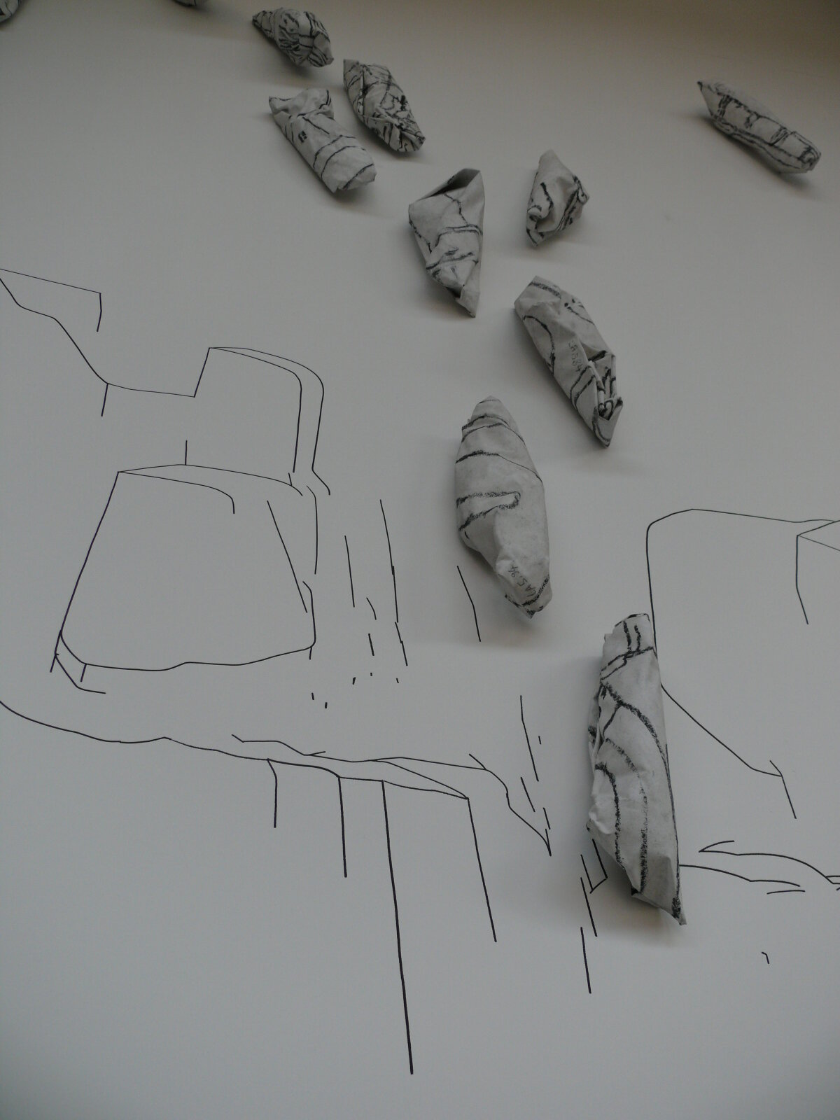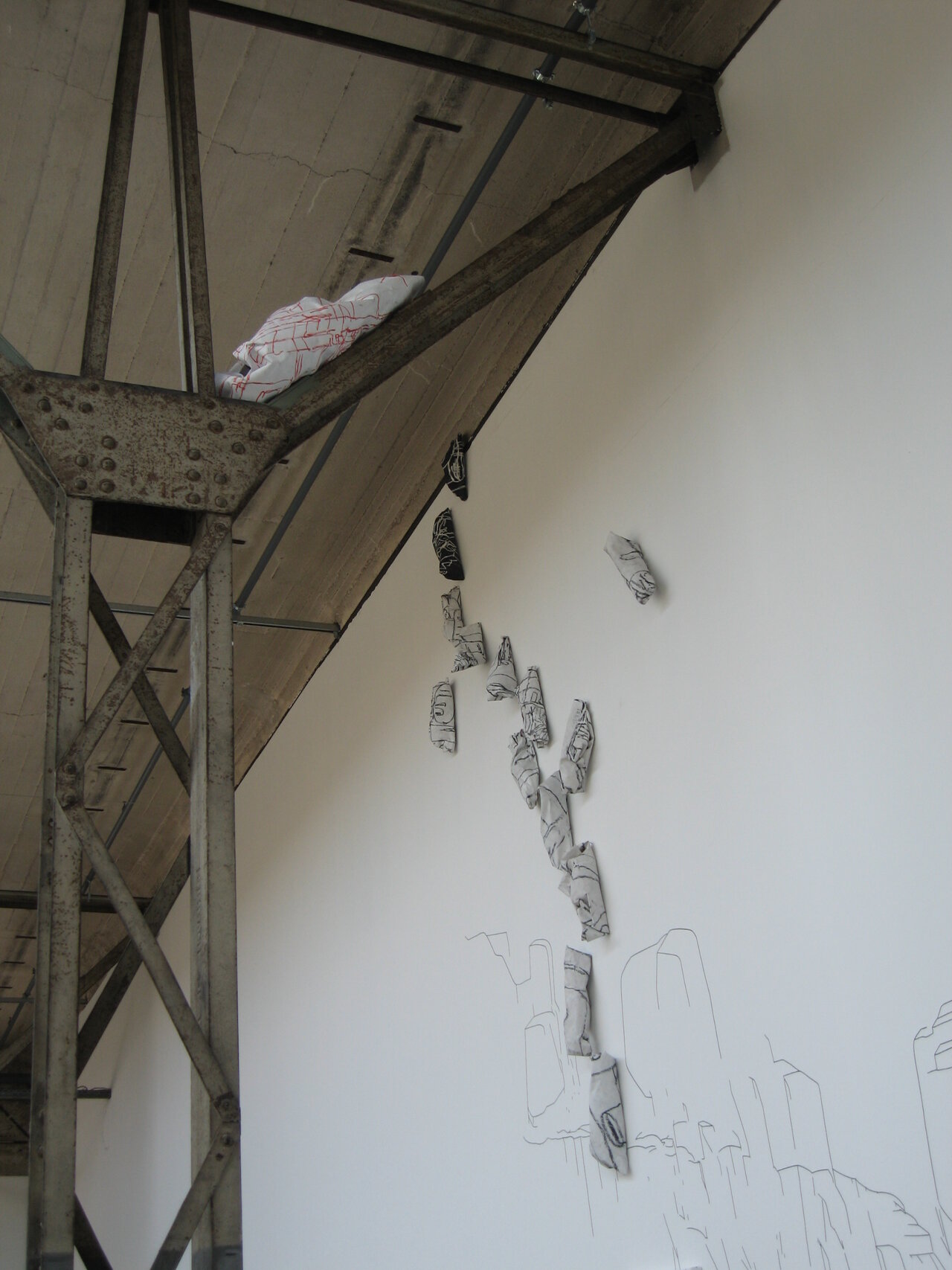 Wall Drawing, Oil stick and acrylic on folded canvases, Gallery Marc de Puechredon, E-Halle, Basel