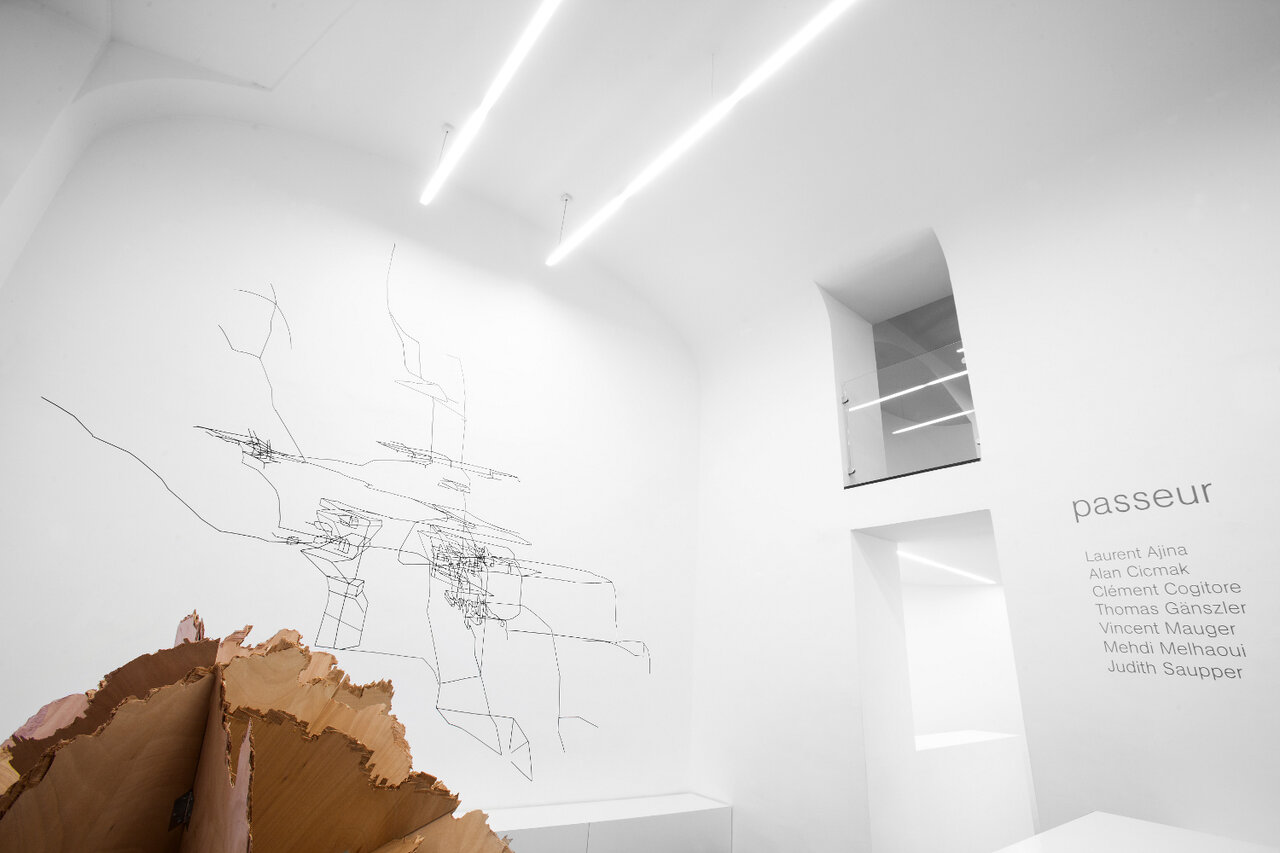 , Paintmarker on wall, variable dimension for Passeur#1, Group show curated by Caroline Messensee at Bäckerstrasse4, Vienna, Photo: Anna Stöcher