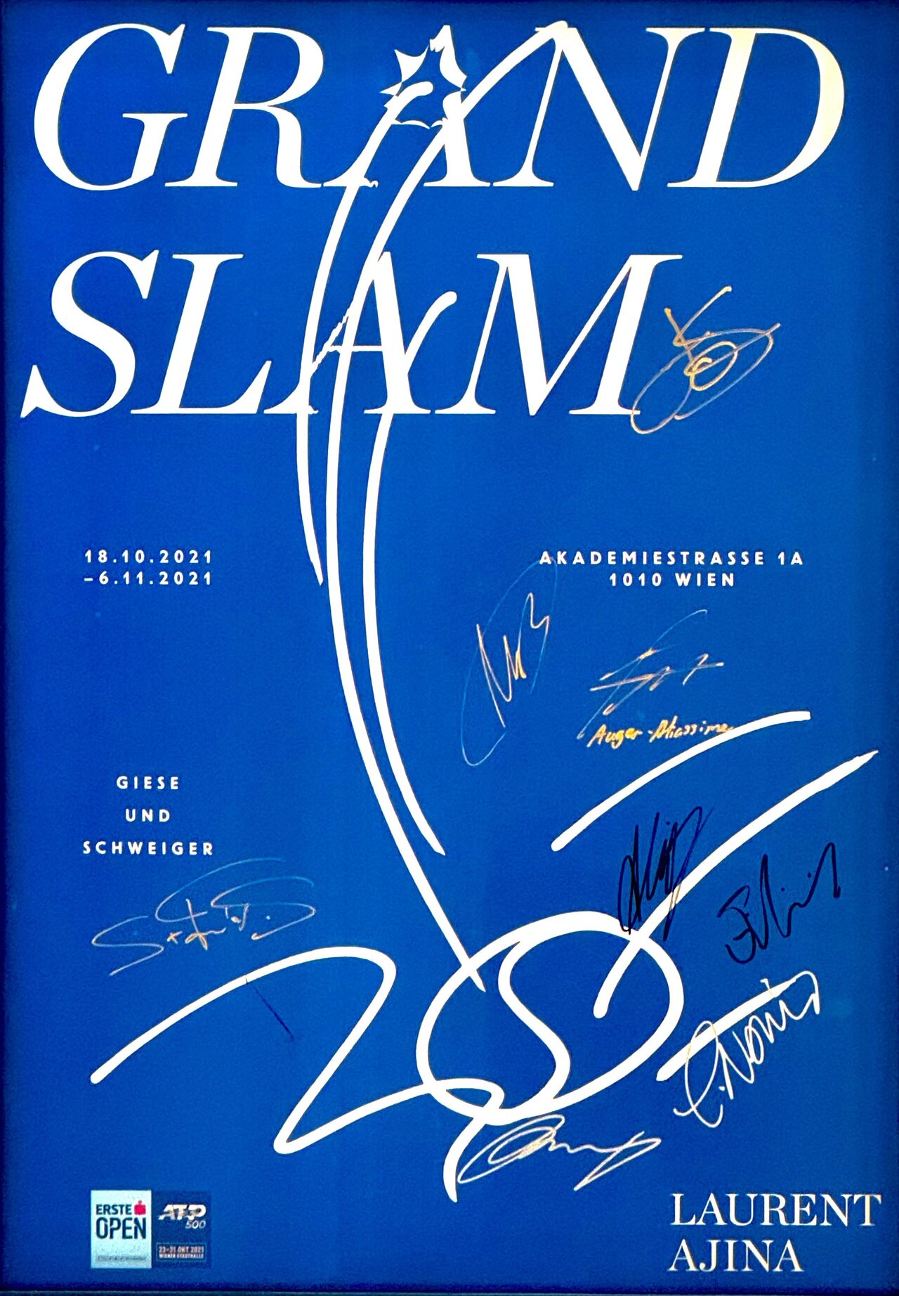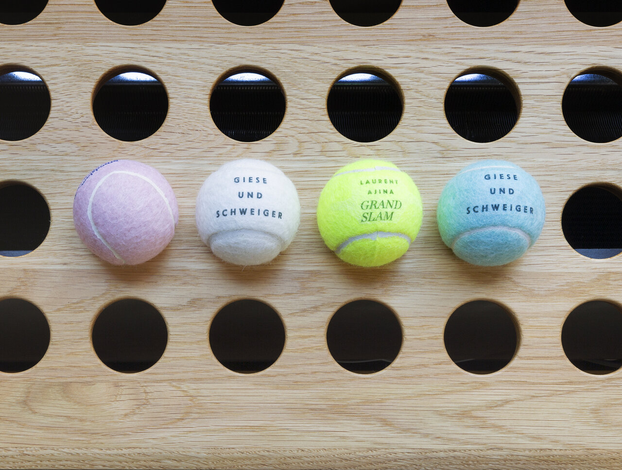 Even the various venues of the Grand Slam tournaments each have their own unique atmosphere, Ajina is convinced. He translates these into his characteristic visual language of lines and color fields. "Each tournament generates its own color through the atmosphere of the venue, the materials of the courts to the advertising banners," says Laurent Ajina, "from the deep blue of the Australian Open in Melbourne, to the fiery orange of the clay court at Roland Garros in Paris, the soft green of the grass court tournament at Wimbledon in London, which by the way has no advertising banners, to the shimmering glow of blue and green of the US Open at Flushing Meadows, New York.”
