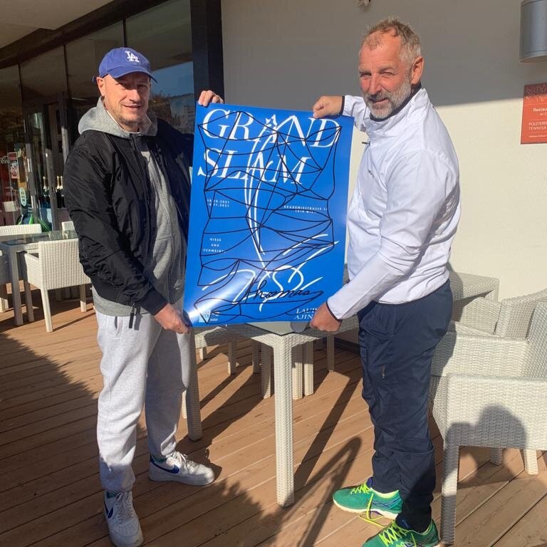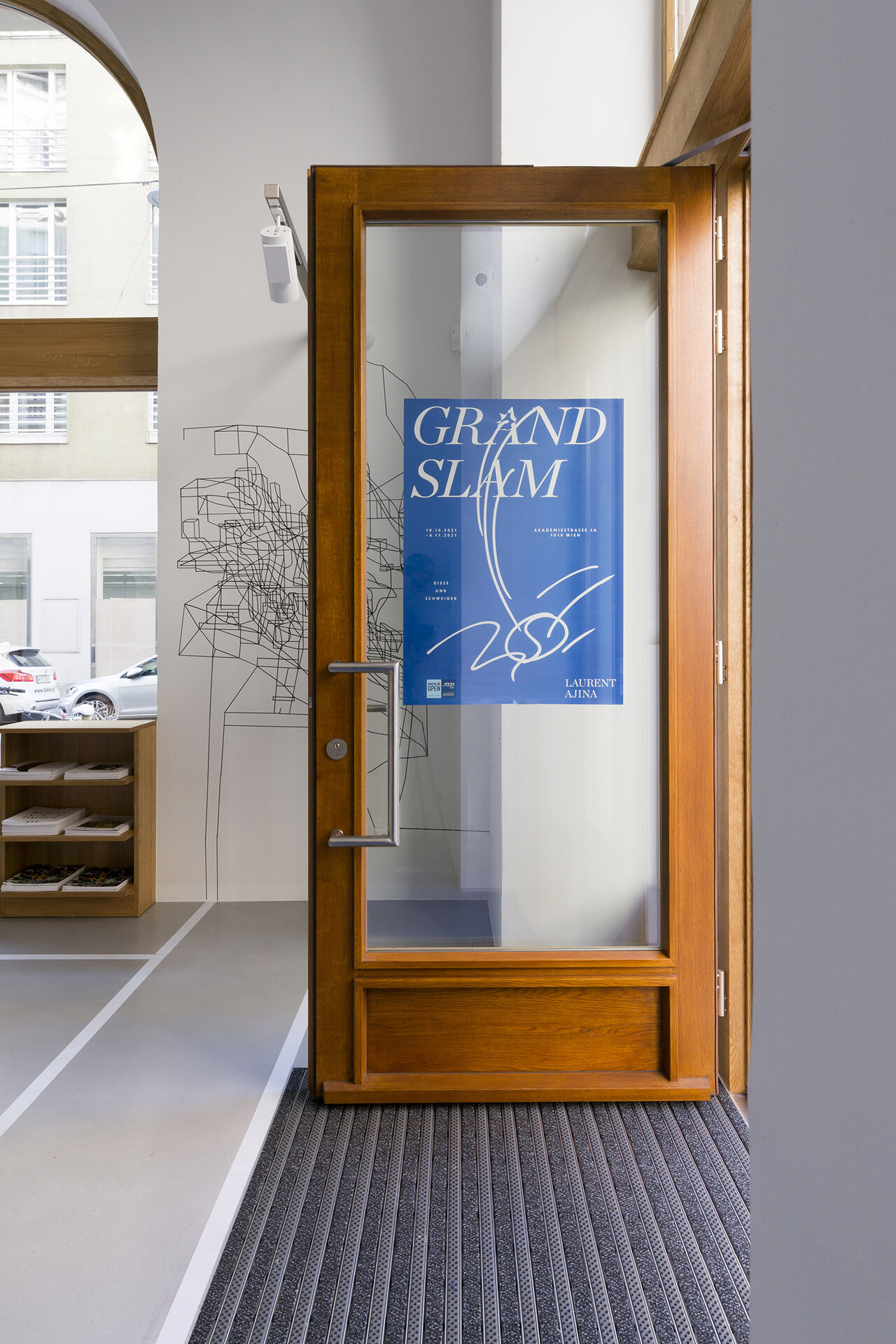 Even in earlier paintings, there were references to tennis. Especially in the works created last year, the brightly colored areas already refer to tennis courts, swimming pools and the gardens of California. Although tennis tournaments are a source of inspiration, Ajina is also interested in the formal parameters of the pictorial conceptions: the interplay of lines precisely drawn with a marker, the planes and the contrast values, and the expression of the colours. It is a reality of its own that he creates on the canvas, into which not least also - very playfully – the formal world of Viennese Art Nouveau flows. The painting becomes a tableau where motif, reflection and artistic interpretation meet. "A world full of fantasy," says Laurent Ajina, "and therefore also a metaphor for life." The series will be completed by autumn with a painting that references the Erste Bank Open at the Vienna Stadthalle. The colors, Ajina says, will be based on the characteristic gray-blue of the ground. The exhibition is to be held in correspondence with the Vienna tennis tournament and will be accompanied by a diverse program, so far as this is possible due to the pandemic. Alexander Giese hopes that this will also appeal to a new audience interested in art and sports.
