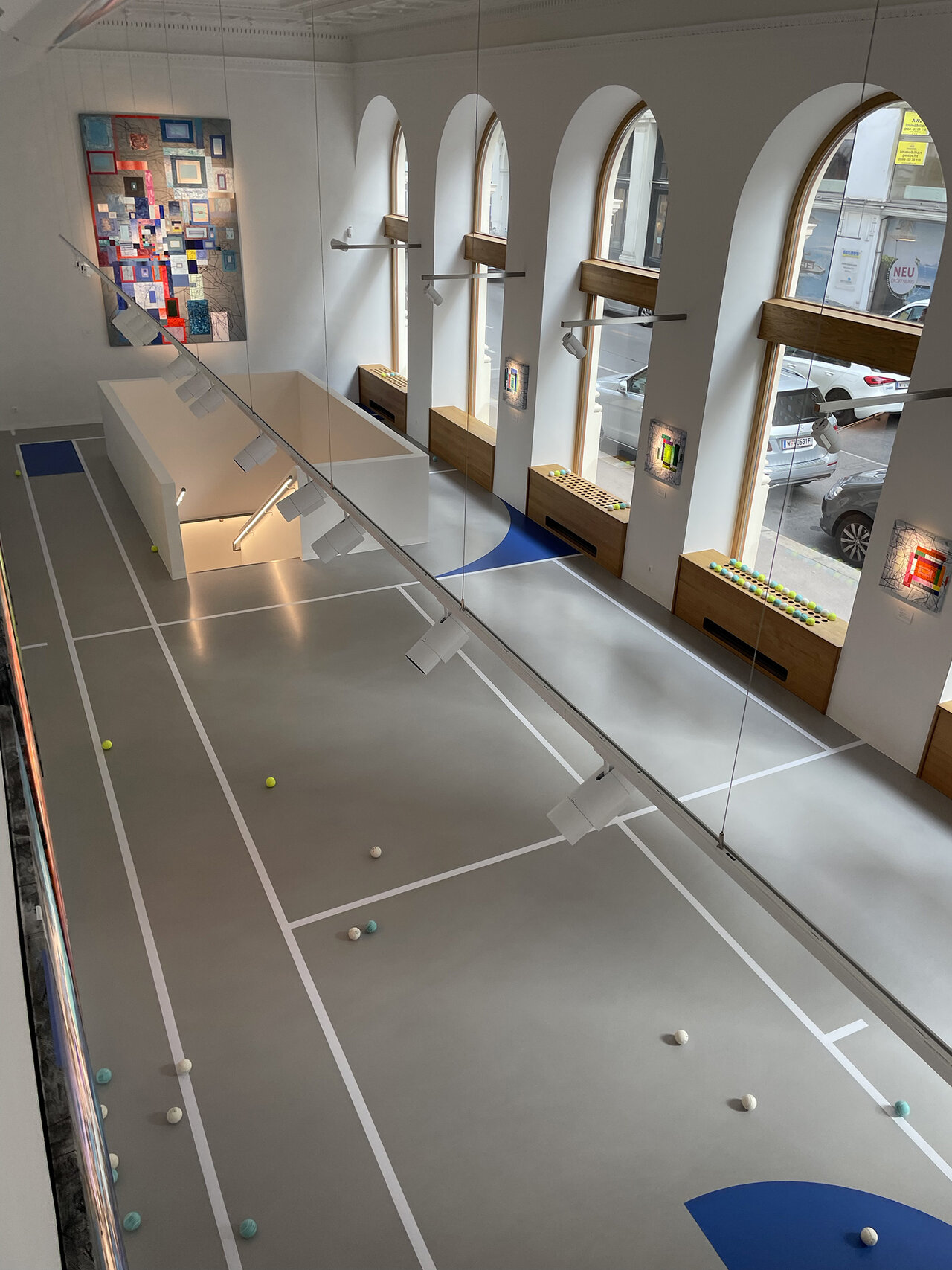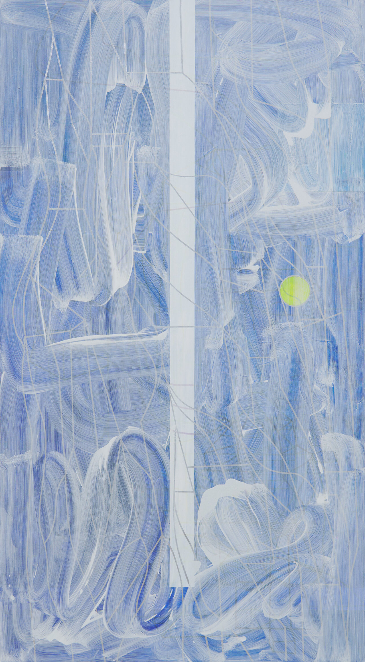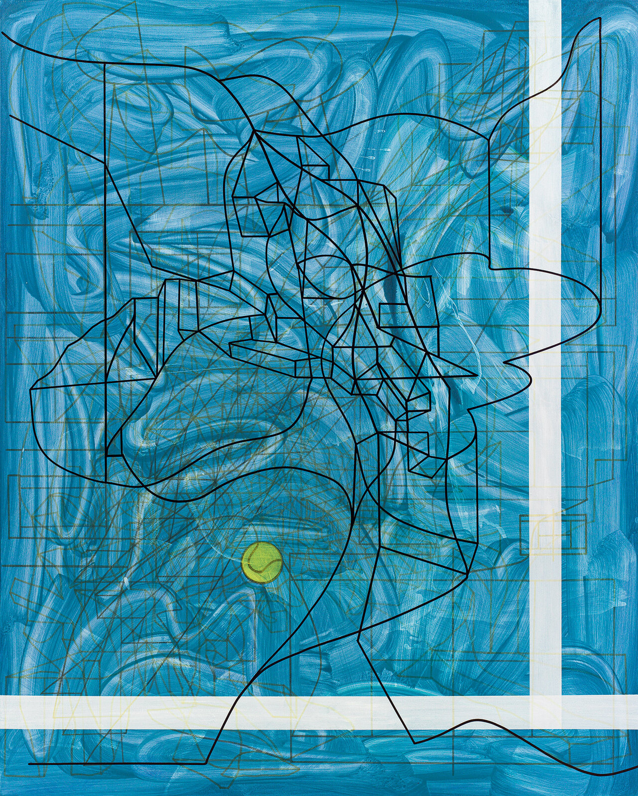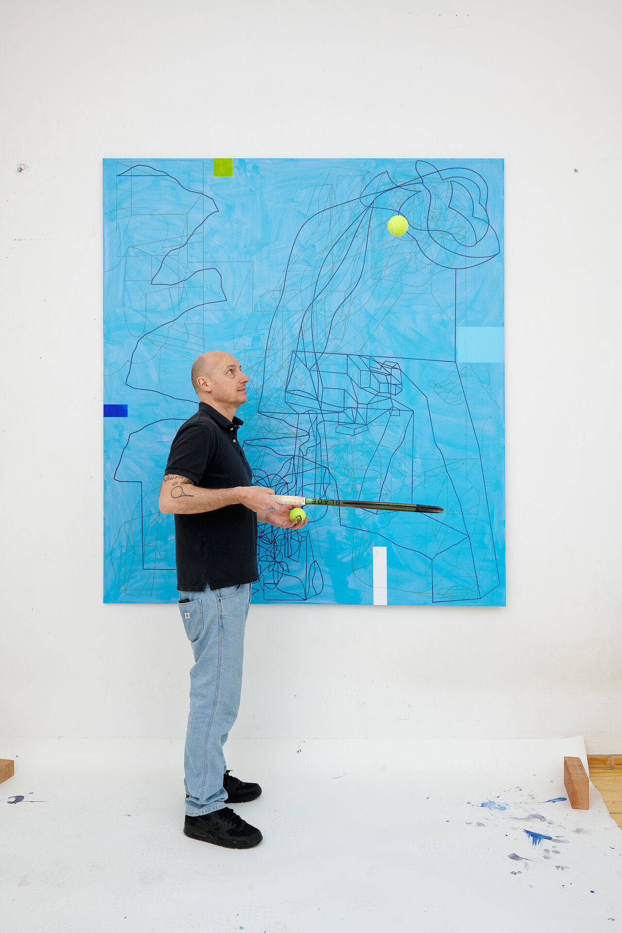 The idea for the exhibition came up together with his tennis partner for many years, Alexander Giese, who is just as passionate and enthusiastic as Ajina about this ball game. Laurent Ajina has played tennis since childhood and, according to the artist: "It may sound surprising, but tennis and my art have some kind of connection. I play as I draw, and vice versa, always with and against me. Tennis and my artistic work are precision and distance. As a tennis player, you relate to geometry, space and rhythm." Born in Paris in 1970 and now living in Vienna, Paris and Los Angeles, Laurent Ajina's paintings develop as a process on the canvas. The lines are not fixed from the beginning but emerge while working.