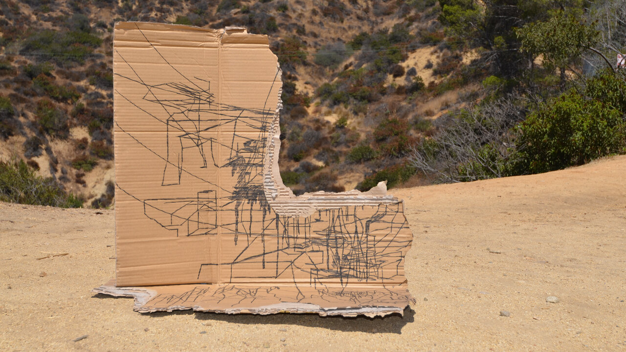 Traveling cardboard photographed by Laurent Ajina in Los Angeles, this cardboard travelled also to Venice, Italy