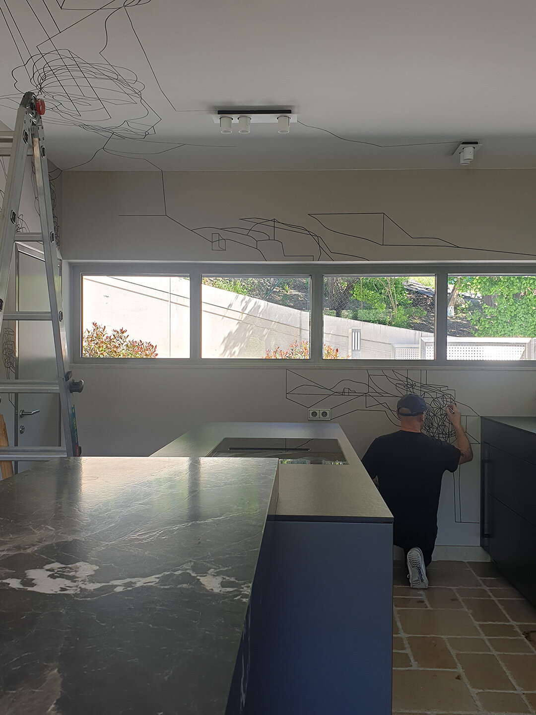 Paintmarker on ceiling and wall, Private house, Hinterbrühl