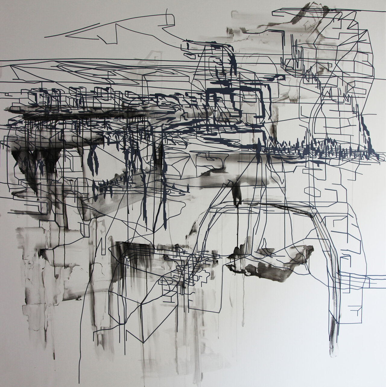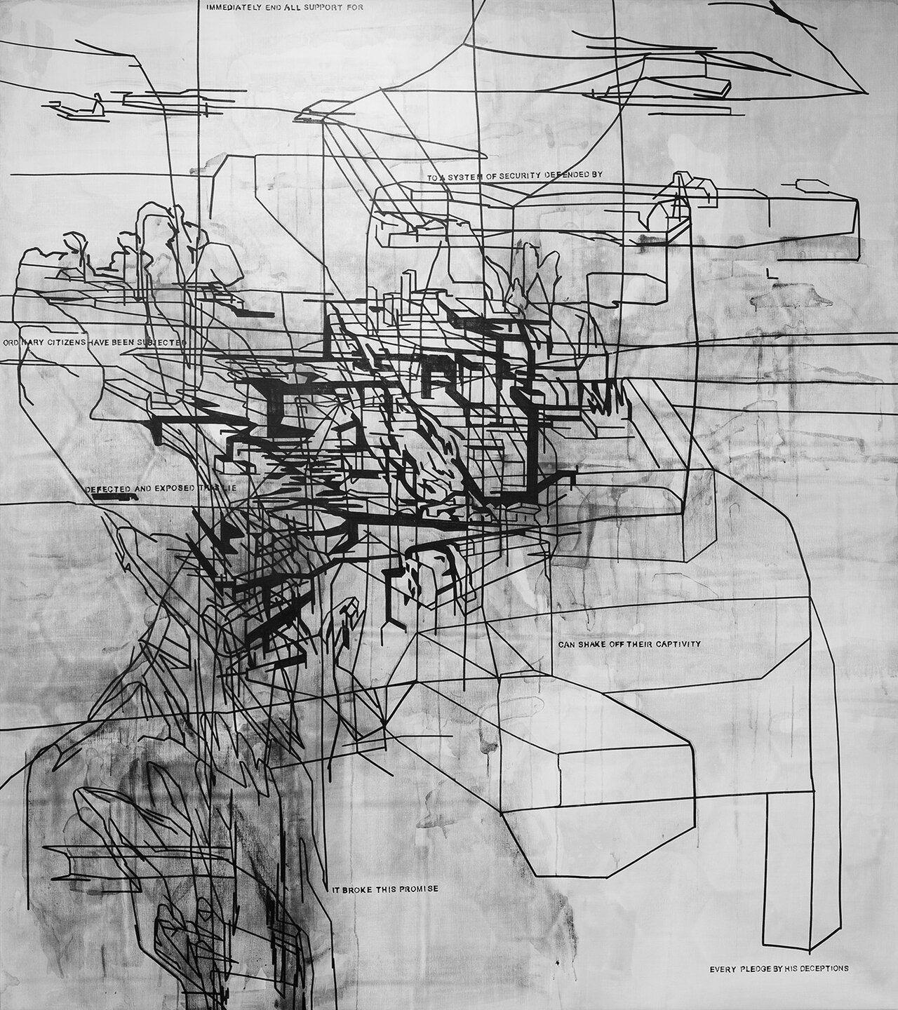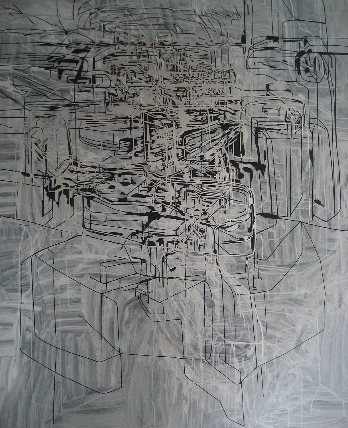 Oil Well, Paintmarker, acrylic and spraypaint on canvas, variable size