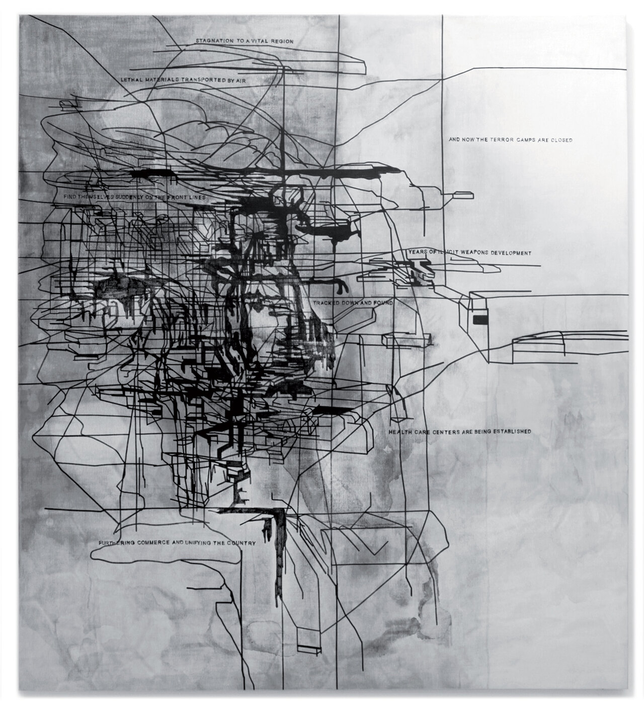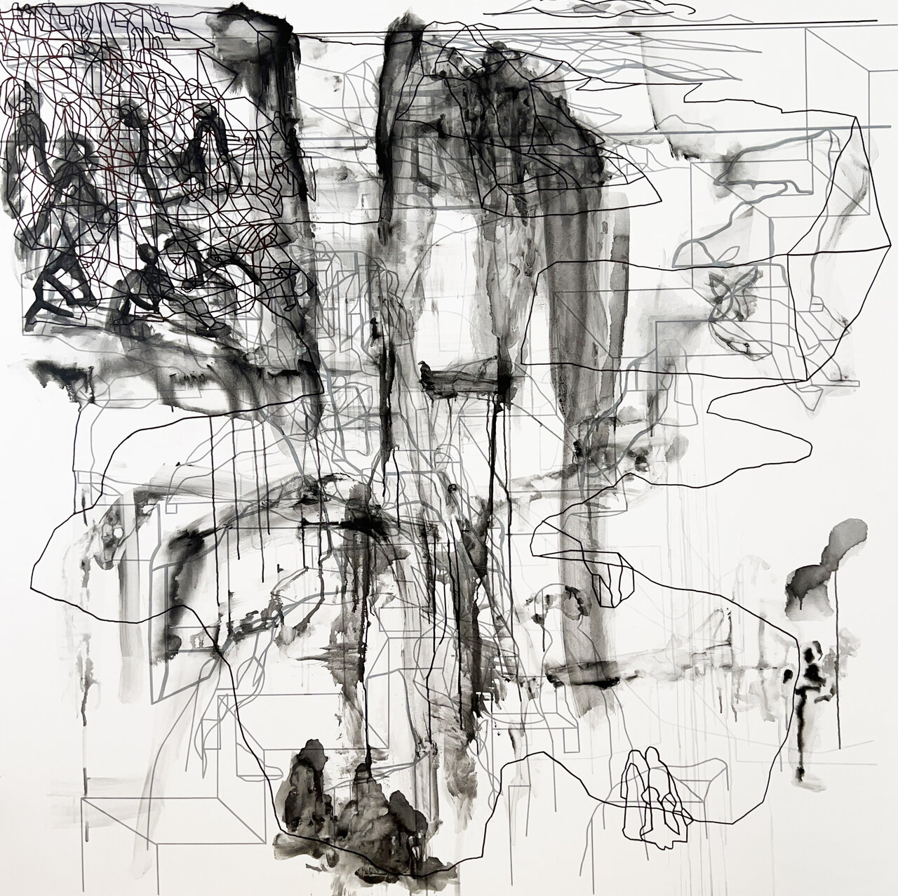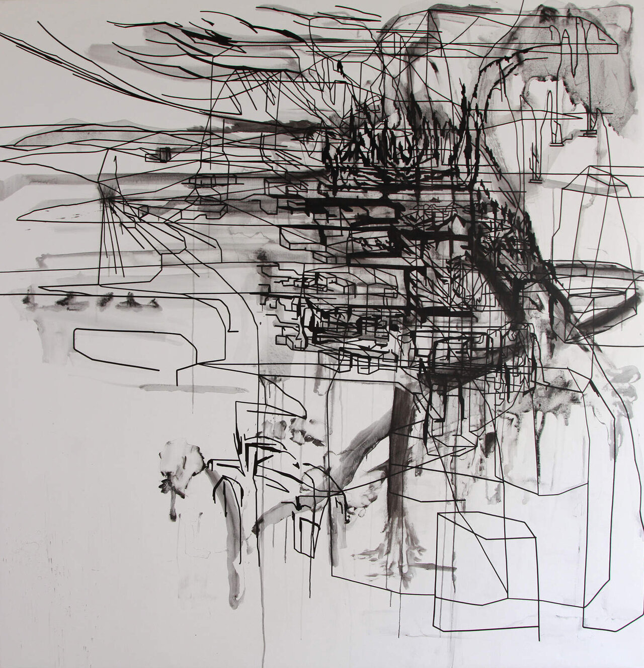Oil Well, Paintmarker, acrylic and spraypaint on canvas, variable size