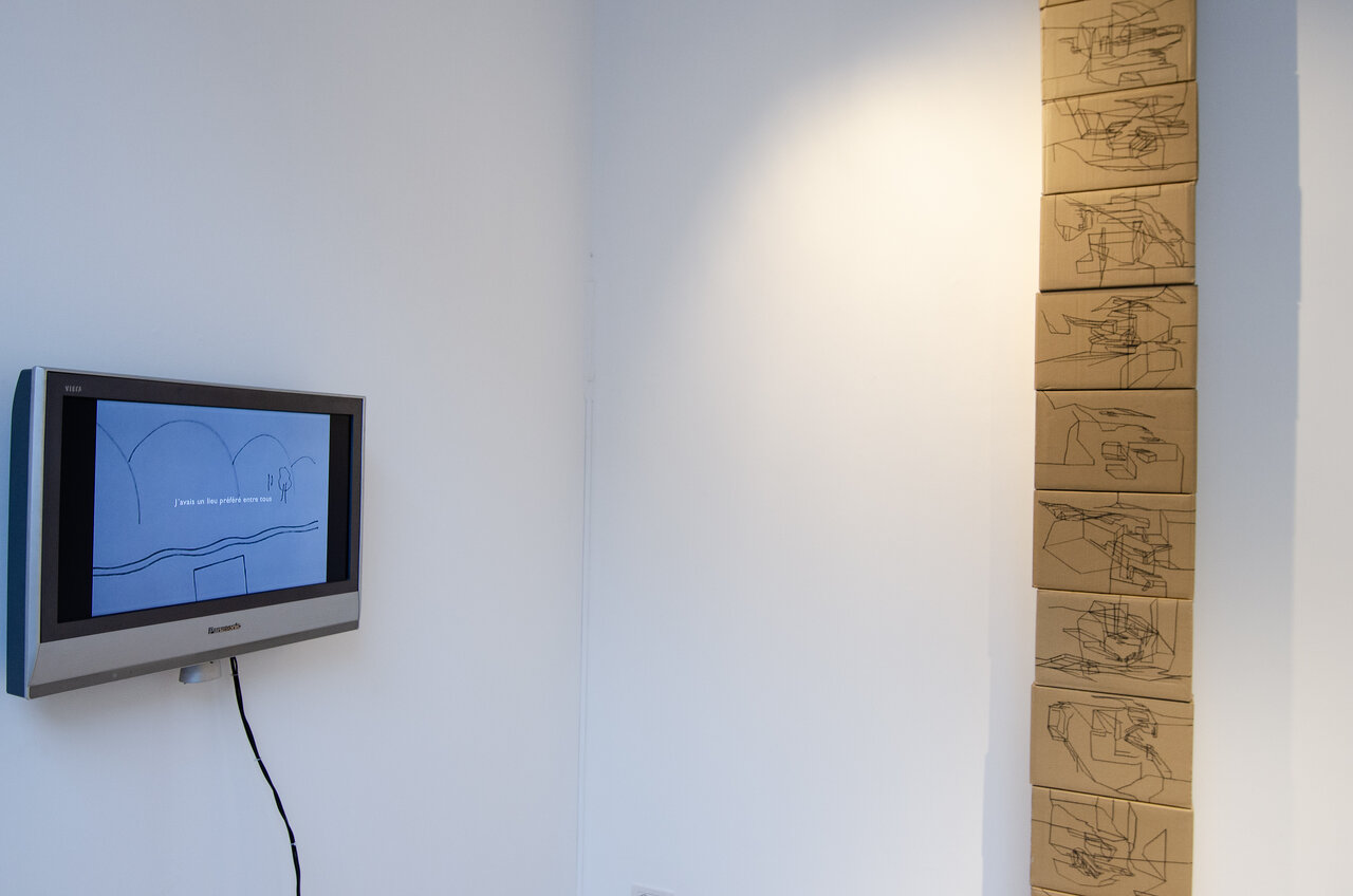 In order to represent space and find our bearings, we mark off zones and create maps. We define territories not only in terms of control and power, but also in terms of history and culture. Laurent Ajina, Morgane Denzler and Till Roeskens extract themselves from standardized notions, relying on memories and powerful experiences to reinvent cartography. Their works are the product of encounters and exchanges. On a wall, on canvas, on paper, or on cardboard, Laurent Ajina draws a line fed by his travels and his own history. He has been specifically exploring his Iraqi roots since 2012 by tracing the outline of his memories. His drawings form networks of lines; silhouettes of architecture and landscapes where words embark and interfere. Fragments of George W. Bush’s speeches mingle with landscapes wounded by a decade of war (Untitled – 2012-2013). Fiction (imagined memories) and reality collide. Landscapes and memories are also articulated in the Morgane Denzler’s works. She photographs mountains highlighting their pictorial quality. The photography is then transformed into a Carte (Map) where the landscape in divided into squares, and folded like a road map, or trail map. Landscapes and topography echo one another. The series Ceux qui restent (Those that remain) brings an alternative dimension to the notion of cartography. In Beirut, Denzler formed a collection of photographs that had been looted from Lebanese families during the war. The artist set out to discover the history of these people that had been forgotten over time. When her search proved unsuccessful, she decided to circumvent “the truth” by speaking to people with Alzheimer’s disease. New truths bloomed and reconstruction took place through their words and images, a rhizomic dynamic that we also find in Till Roeskens’ video work. Roeskens encourages and captures the poetic drawings of daily life and human experience. Videocartographies: Aida, Palestine (Videomappings: Aida, Palestine) brings together the testimonies of the inhabitants of a refugee camp. Bodies, expressions and movements are detained by a blind military strategy, its plans, and its objectives. The artist creates a bond with the people he meets. Their words and drawings are the testimony of an absurd and frustrating daily life. Conversely, Plan de situation (Situation map) translates the free movement of bodies, words, and thoughts. Till Roeskens began a series of films in Marseille that narrate sociology, personal anecdotes, and geographical situations; stories of the past and of modern day are entangled in a live and profoundly humane account. Each having conceived the geography of powerful situations, these three artists invite us to join them on an intellectual journey full of memories and sensations. Their drawings are united in a common desire to search, observe, comment, and pass on stories.