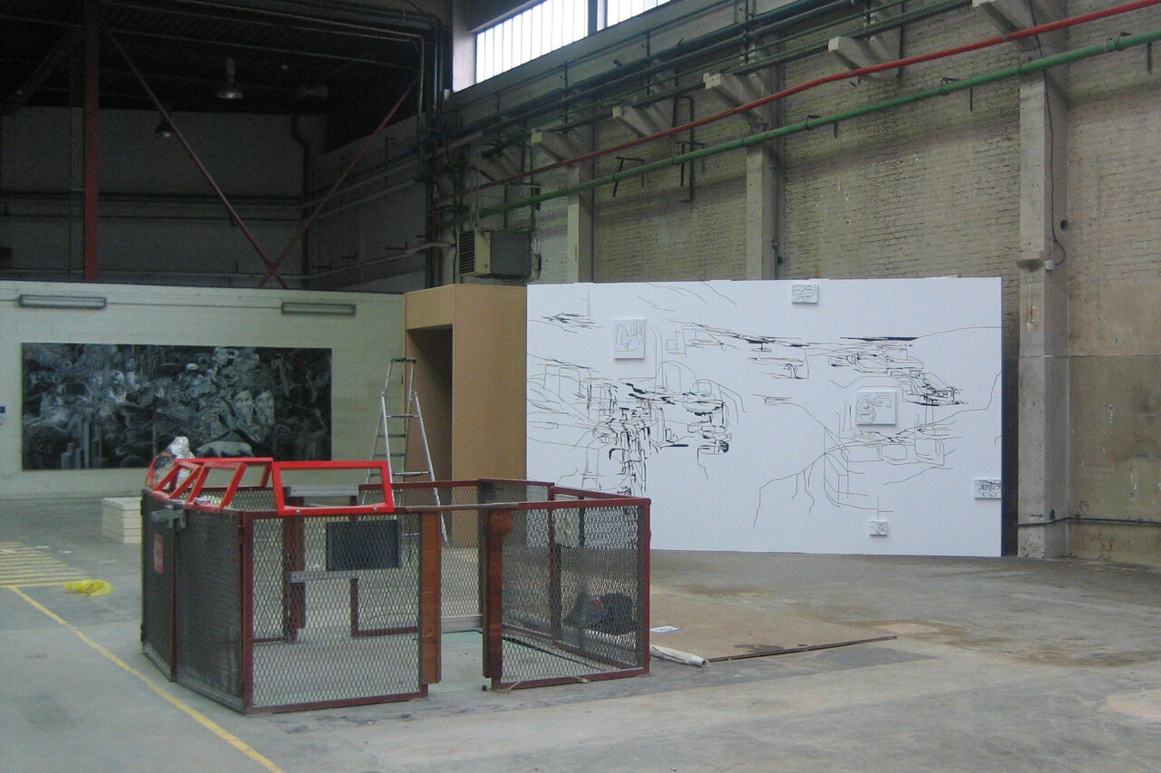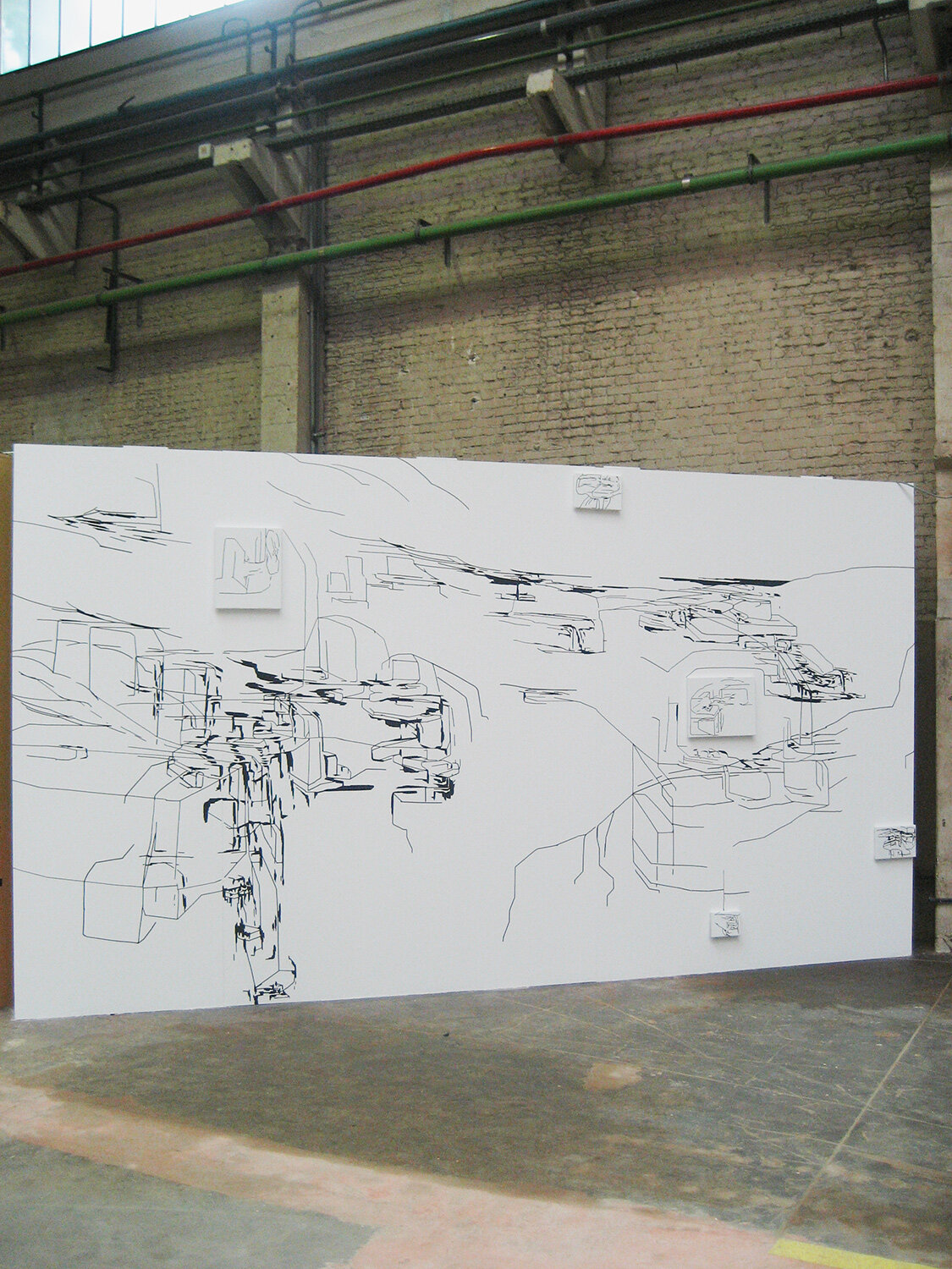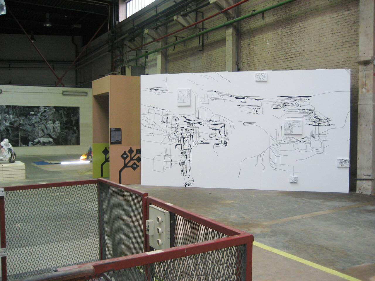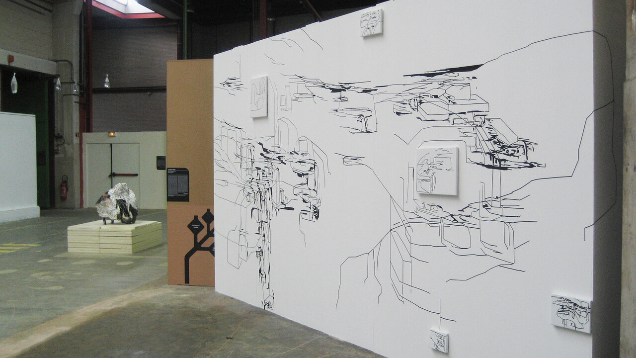 Paintmarker, acrylic and canvases on wood panel, 280 × 600 cm, curated by Stéphane Correard, La Fabrique, Montrouge
